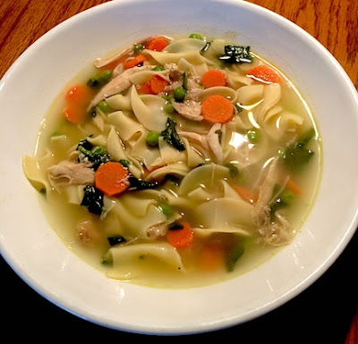 | My lunch today - made with chicken stock I prepared after baking a chicken for Sunday dinner. |